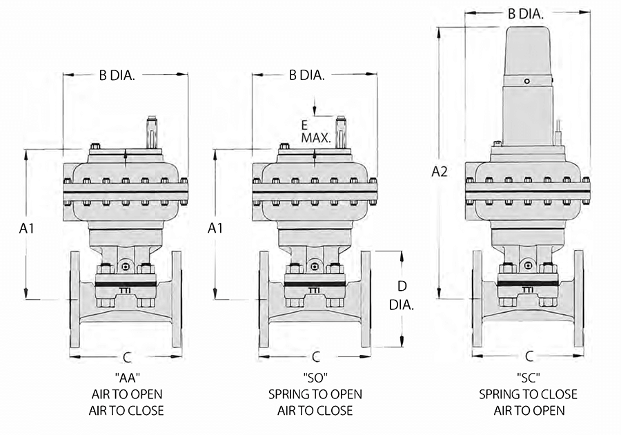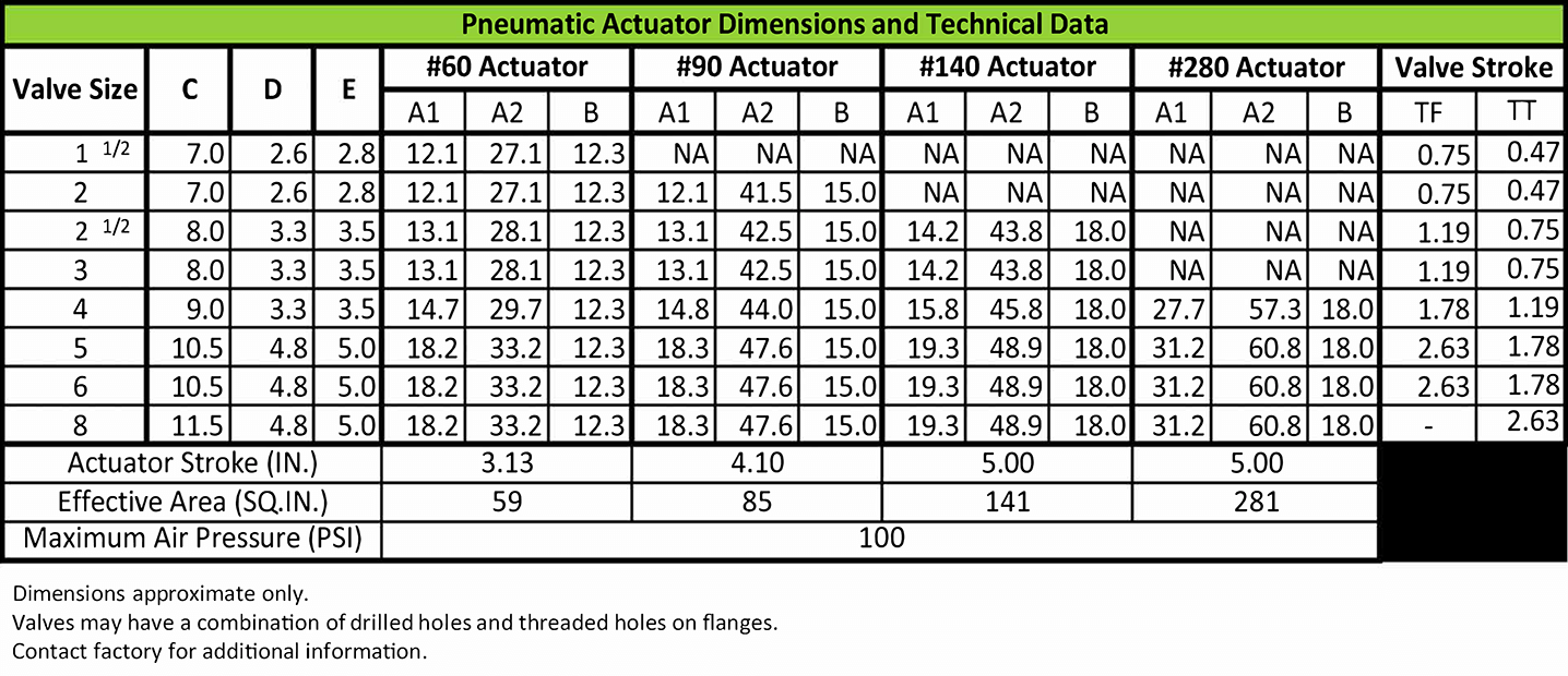 Pneumatic Actuator Dimensions and Technical Data (inches)